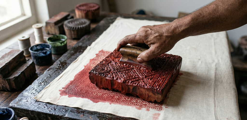 Did You Know: Making a single piece of Ajrakh involves up to 16 distinct steps of printing, dyeing, and washing — each layer building the depth and richness of the final pattern. The craft saw a significant revival after the 2001 Gujarat earthquake, when artisan families relocated to a village now known as Ajrakhpur.